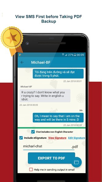 E2PDF Pro is very simple but highly productive app that allows you to take backup of your SMS conversation with your loved once and then never loose that again. All you have to do is to select conversation and before taking backup in PDF, whole conversation appears on your screen, you will enter output file name and with one click backup will be created. SMS backup is possible with 3 steps now. Generated backup file can be stored on local drive or in email and can be instantaneously shared.