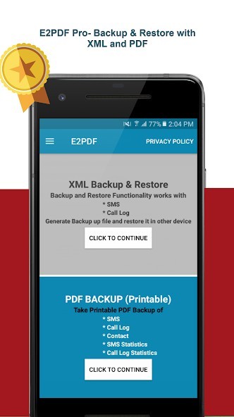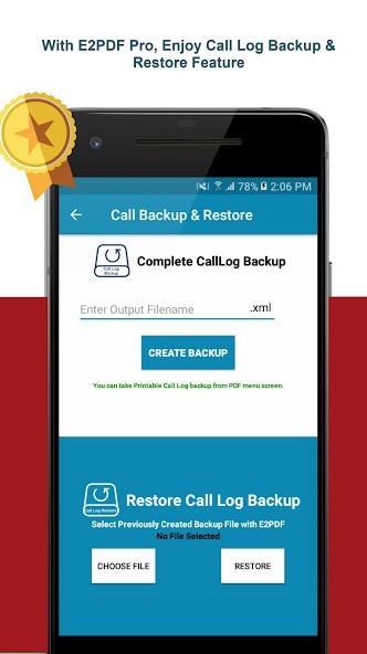 Backup & Restore feature is available in XML while additional PDF feature is available for SMS, Call Log, Contact along with Call Log and SMS Statistics.DISTINCT FEATURES OF APP